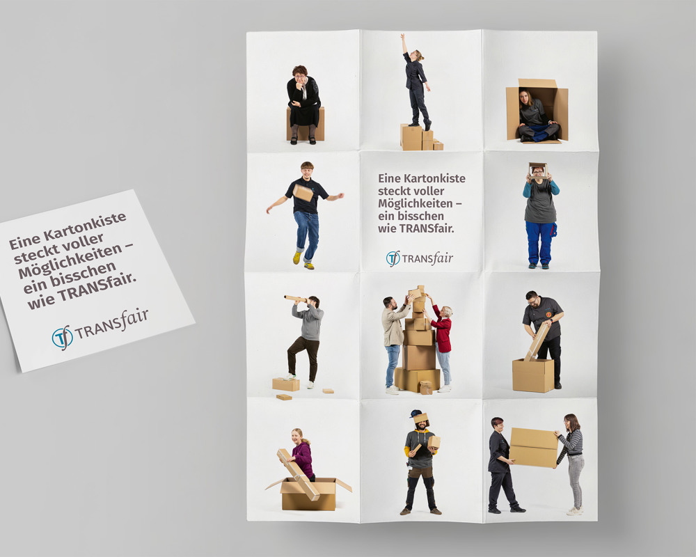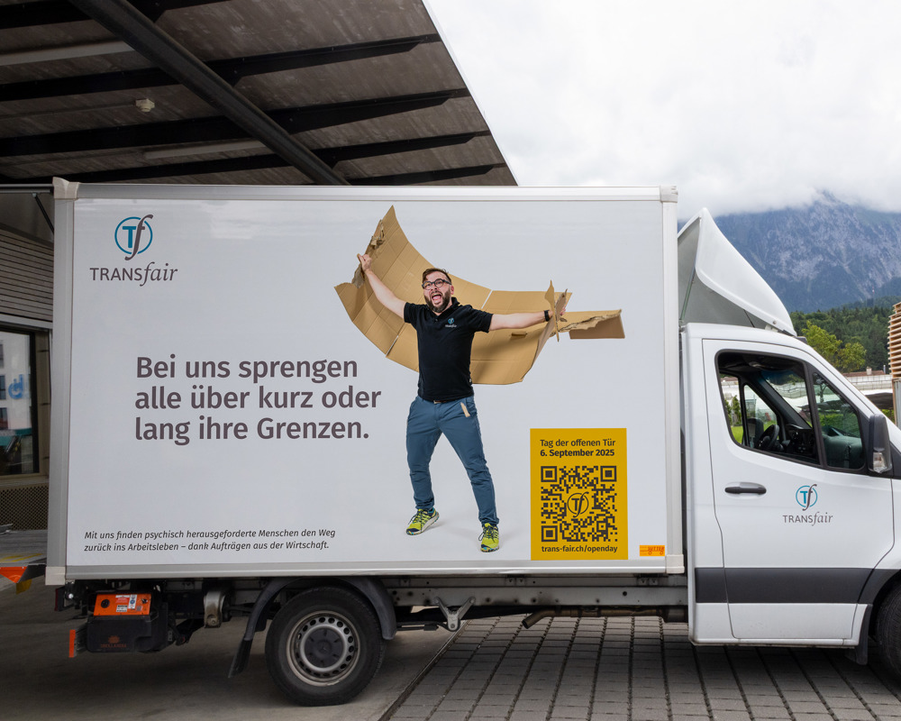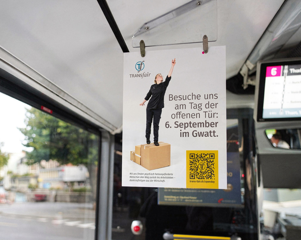 Im Jubiläumsjahr stärken wir unsere Sichtbarkeit mit einer Kampagne namens «Out of the Box». Plakate im Bus, neue Fahrzeugbeschriftungen und Bewegt-Werbebilder auf diversen Kanälen zeigen, was TRANSfair ausmacht.